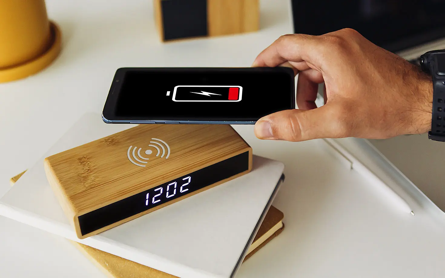 Orë tavoline (LCD desk clock) me karikues wireless (wireless charger) 15 W