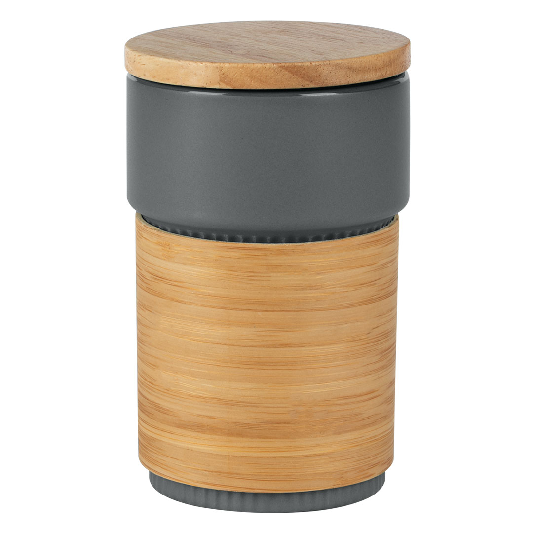 Dizajni elegant dhe funksionaliteti në këtë filxhan të veçantë: materiali kryesor është qeramika e cilësisë së lartë, ndërsa kapaku dhe mbajtësa janë prej bambuje. Kapaciteti prej 340 ml e bën ideal për përdorim në shtëpi, zyrë apo si dhuratë promocionale.